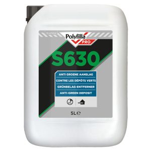 Polyfilla PRO S630  bestrijdt en verwijdert groene aanslag, schimmels en algen en is zo een cruciale voorbereiding voor alle (buiten)schilderwerken, op alle ondergronden: